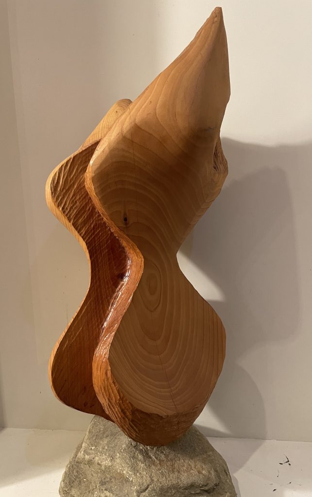 Het beeldhouwen is voor mij een wisselwerking tussen het hout en mij. Ik blijf hakken, vijlen en schuren tot ik tevreden ben. Ik hou van lichamelijke arbeid en het ambachtelijke van het houtbewerken.